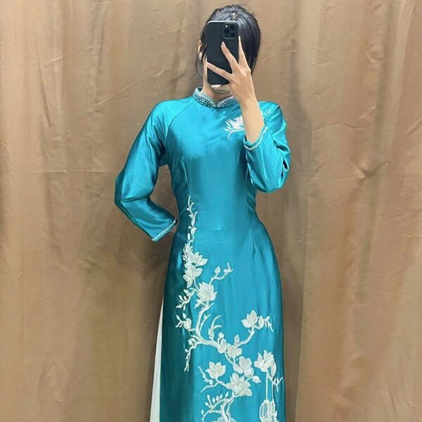 Áo dài bà sui xanh lụa mango-x393
