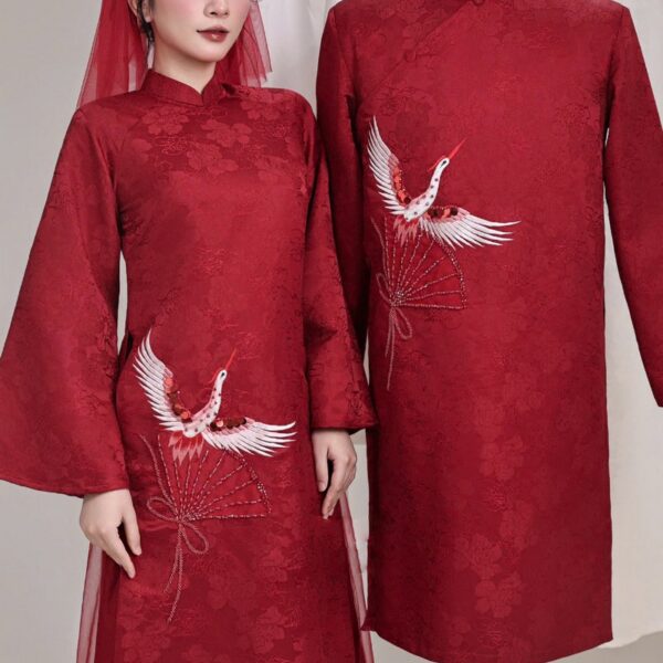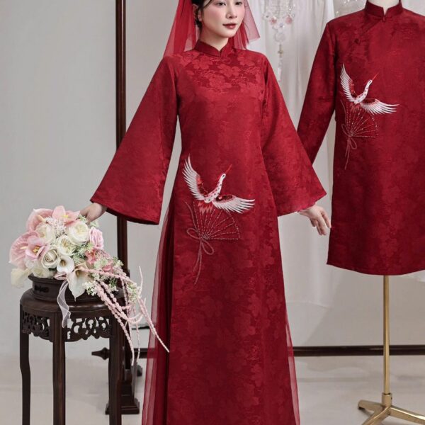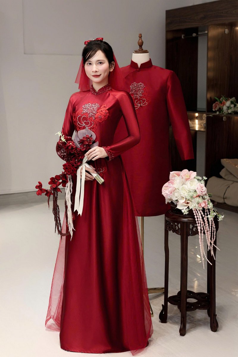 Áo dài cô dâu đỏ đô kết hỷ – D99