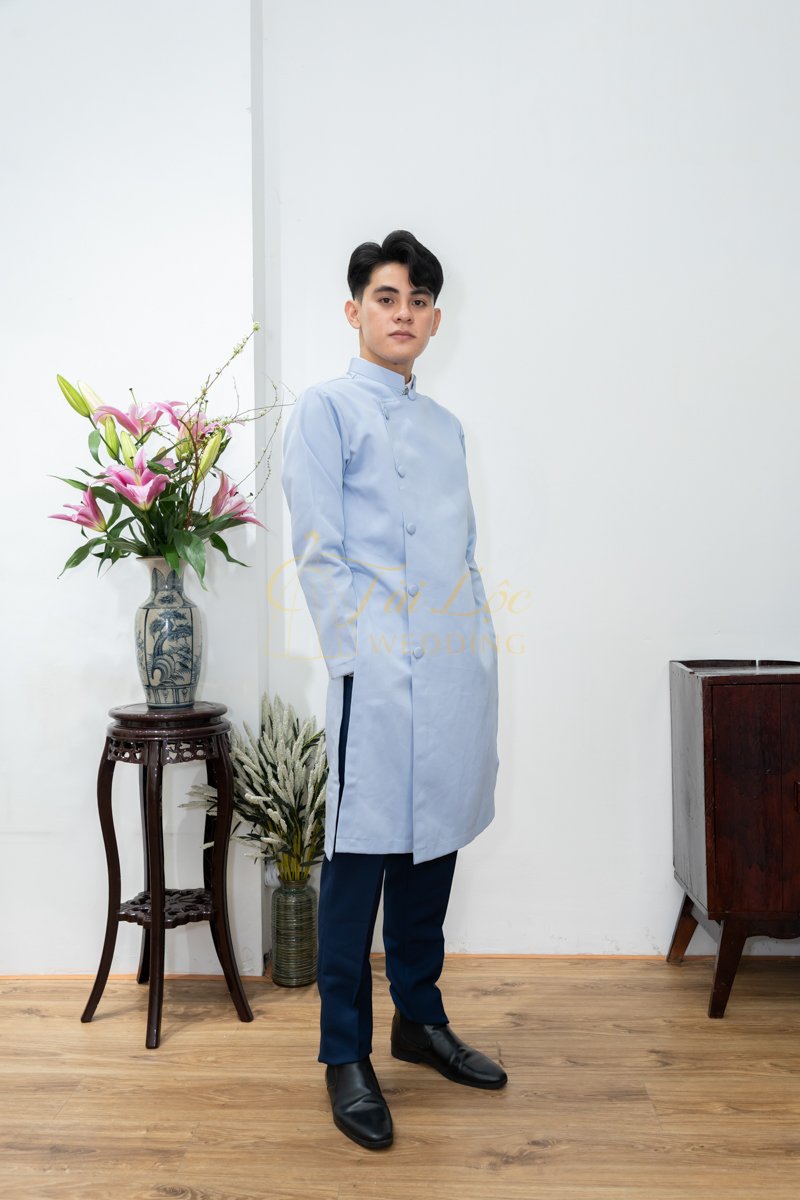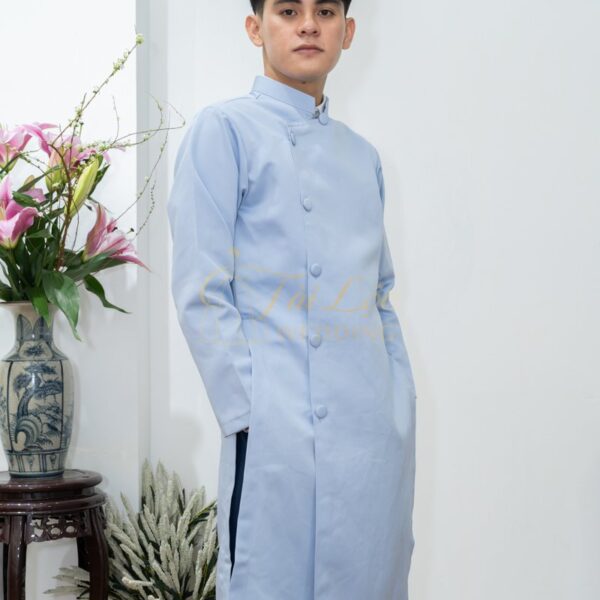 Áo dài bà sui xanh lụa Queen kết cườm cao cấp- X369