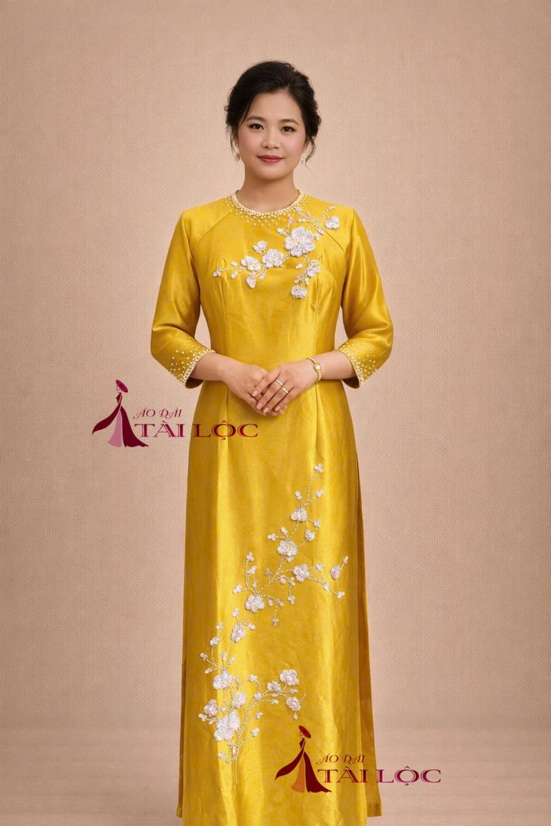 Áo dài bà sui vàng đồng lụa Ruby-V376
