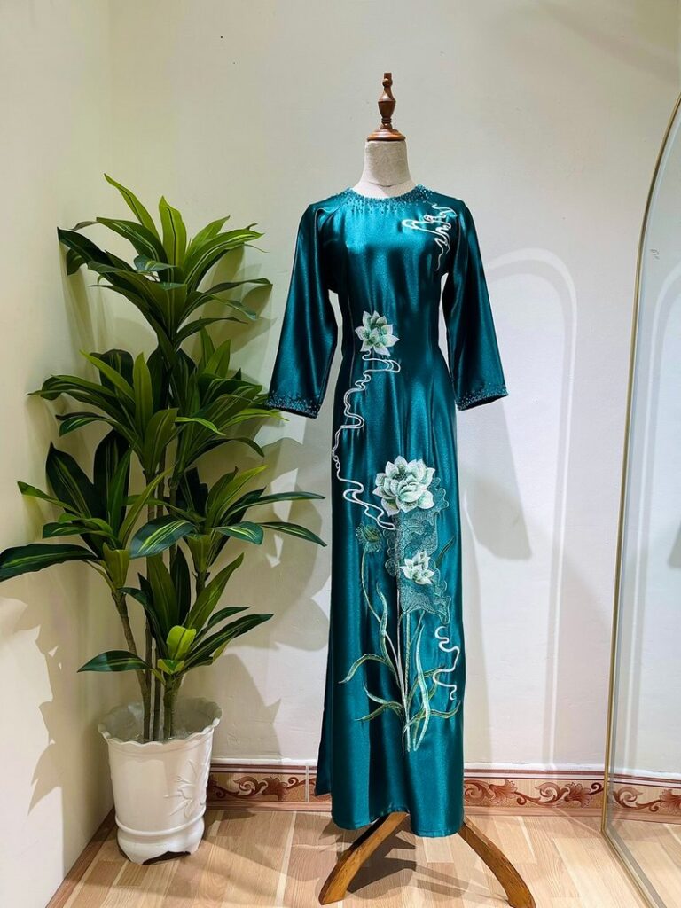 Áo Dài Bà Sui Xanh Vẽ BSX-V33