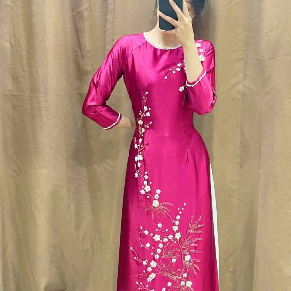 Áo Dài Bà Sui Hồng Mận Lụa Đẹp HM396