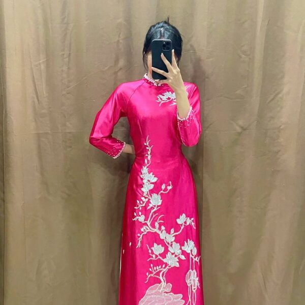 Áo Dài Bà Sui Hồng Sen Lụa Đẹp HS395
