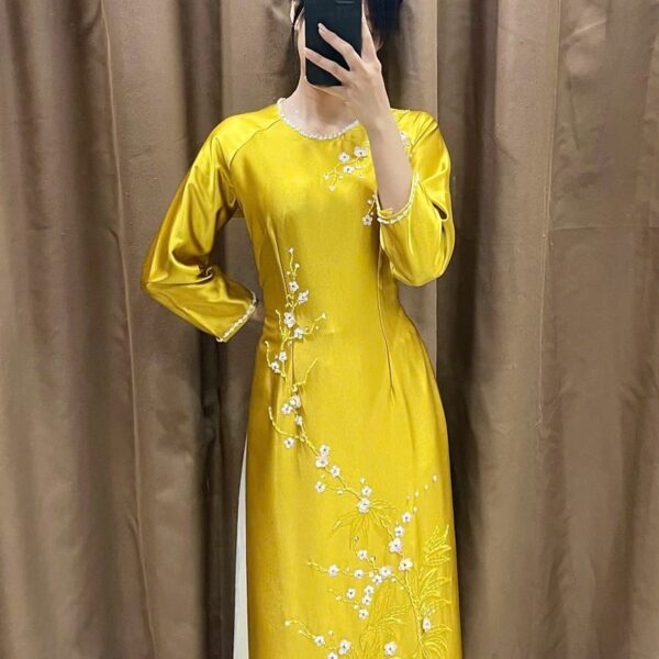 Áo Dài Bà Sui Màu Vàng 2 Tà MS V1