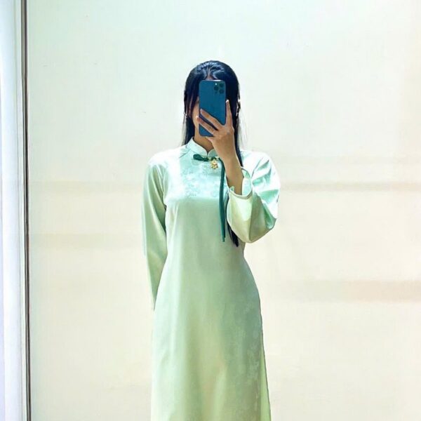 Áo dài chụp hình màu xanh lá cổ 2p đẹp