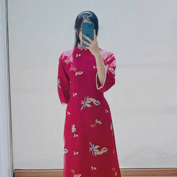Áo dài chụp hình xuân đỏ cô 3 Sài Gòn không cổ