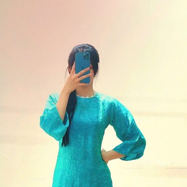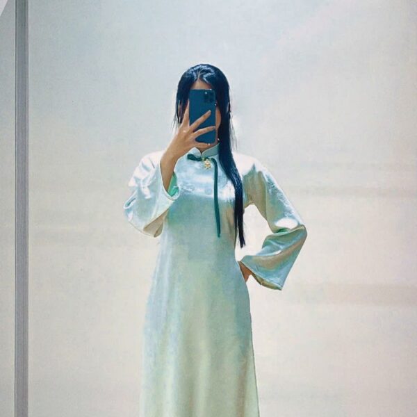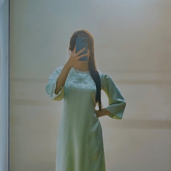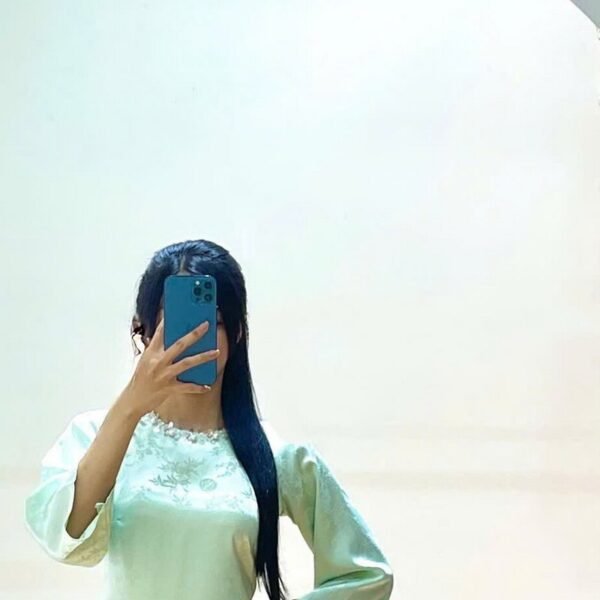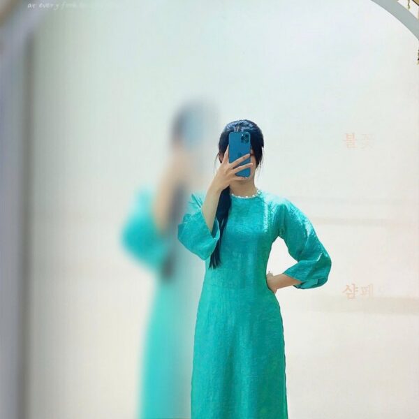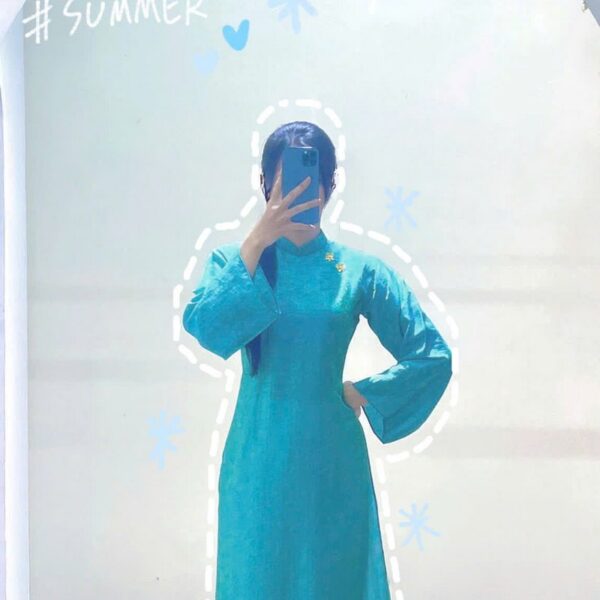 Áo dài chụp hình xanh ngọc cổ 2p đẹp