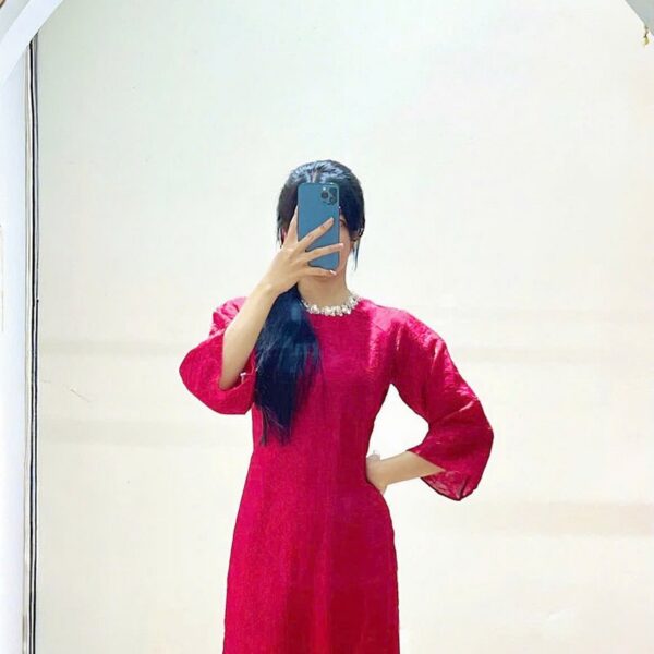 Áo dài xuân màu đỏ đô cổ tròn suông đẹp
