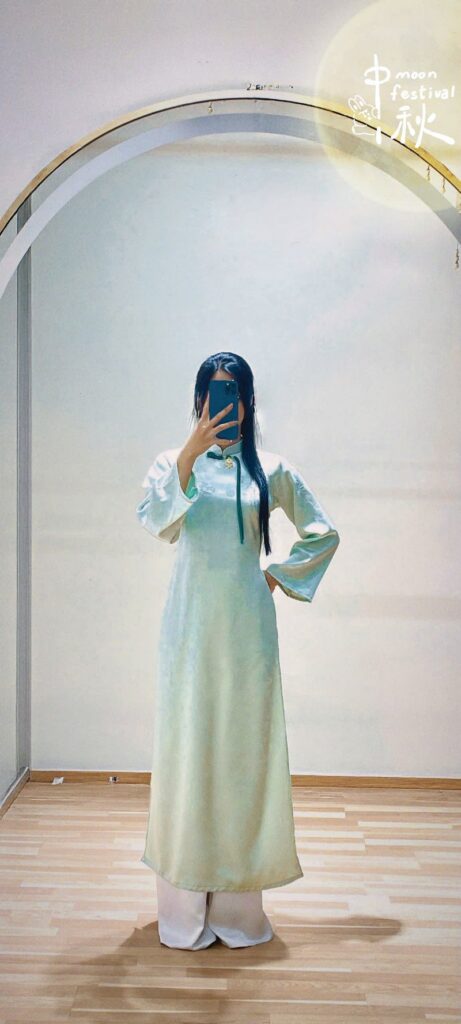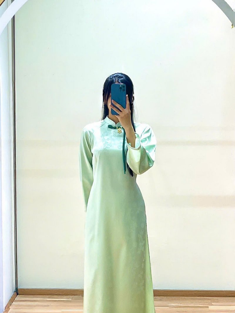 Áo dài chụp hình xanh ngọc cổ 2p đẹp