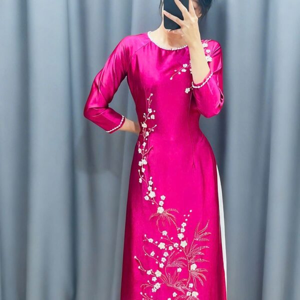 Áo Dài Bà Sui Hồng Mận Lụa Đẹp HM396